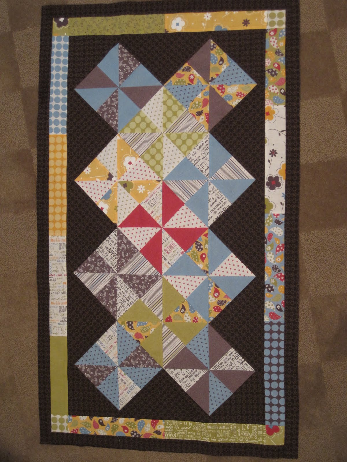 its made with Make Life scraps & wrong size blocks from my Pinwheel Sampler quilt that i have been working on