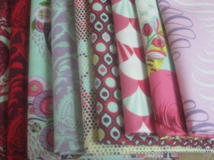 the next package that arrived at my door step this week was this. 9 yards of Parisville by Tula Pink. i found this fabric at a great price through Twitter. i was on Twitter & VenezieDesigns posted a tweet about 9 yards of Parisville at such & such percentage off to 1st buyer. i clicked & bought it & it showed up very quickly.