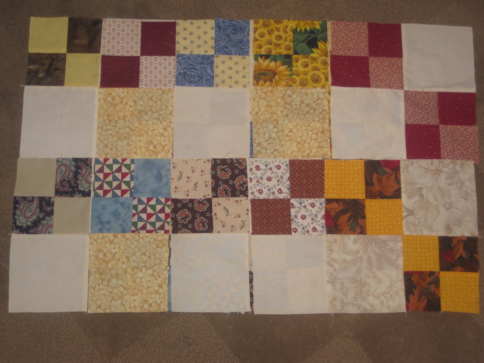 i finished my 1st quilt top for the H2H Challenge. i didn’t follow a pattern. my goal was to use any much of the fat quarter’s that i was given as possible. i have 2 small pieces left & they will be pieced into the back of the quilt.