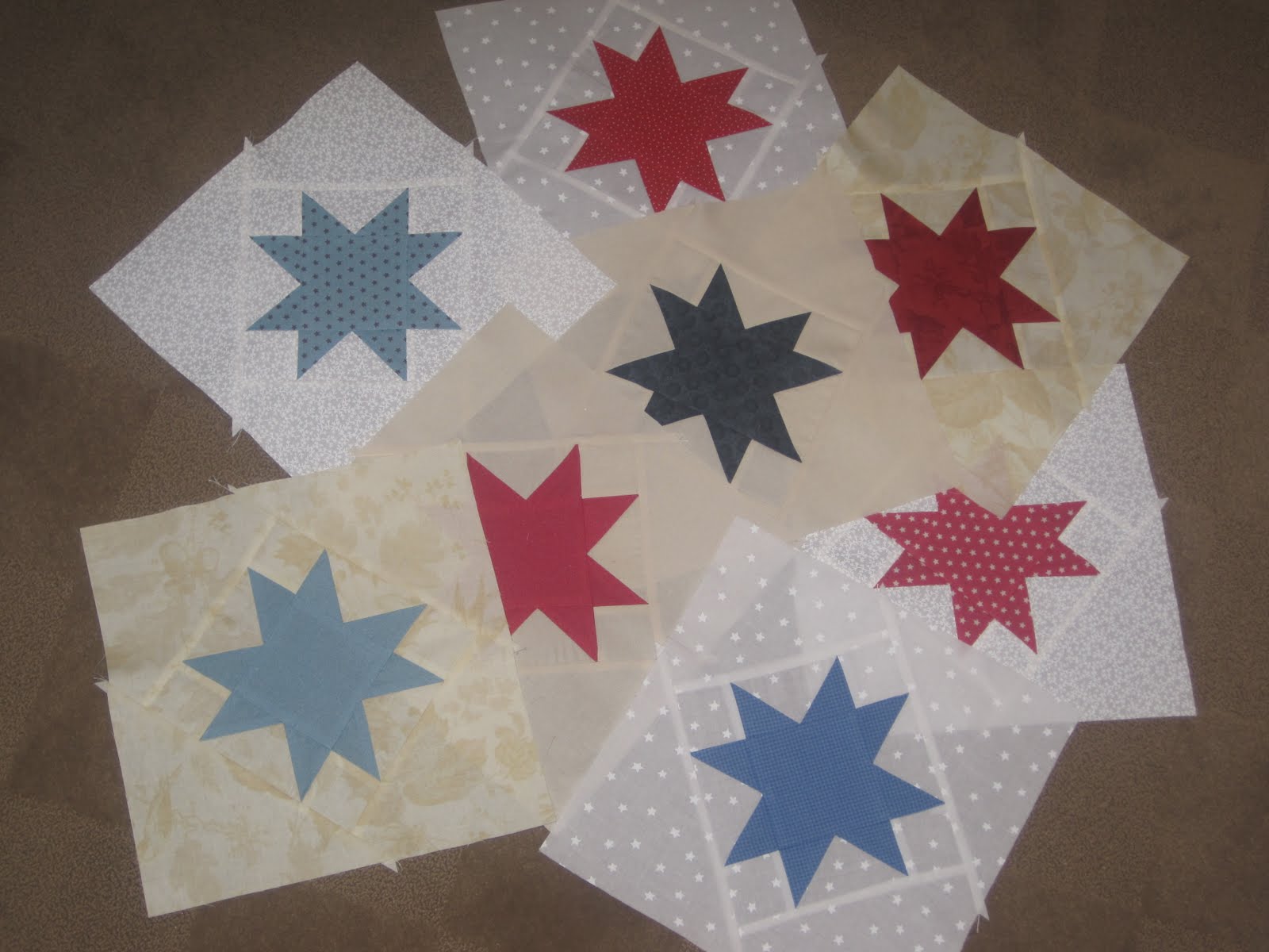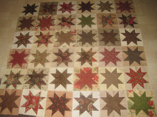 my other sewing accomplishment this past week was finishing up these star blocks for my Opening Day quilt. i got the last few finished last night & laid them out on the floor. i still have some tweaking to do with the layout but overall i am pleased.