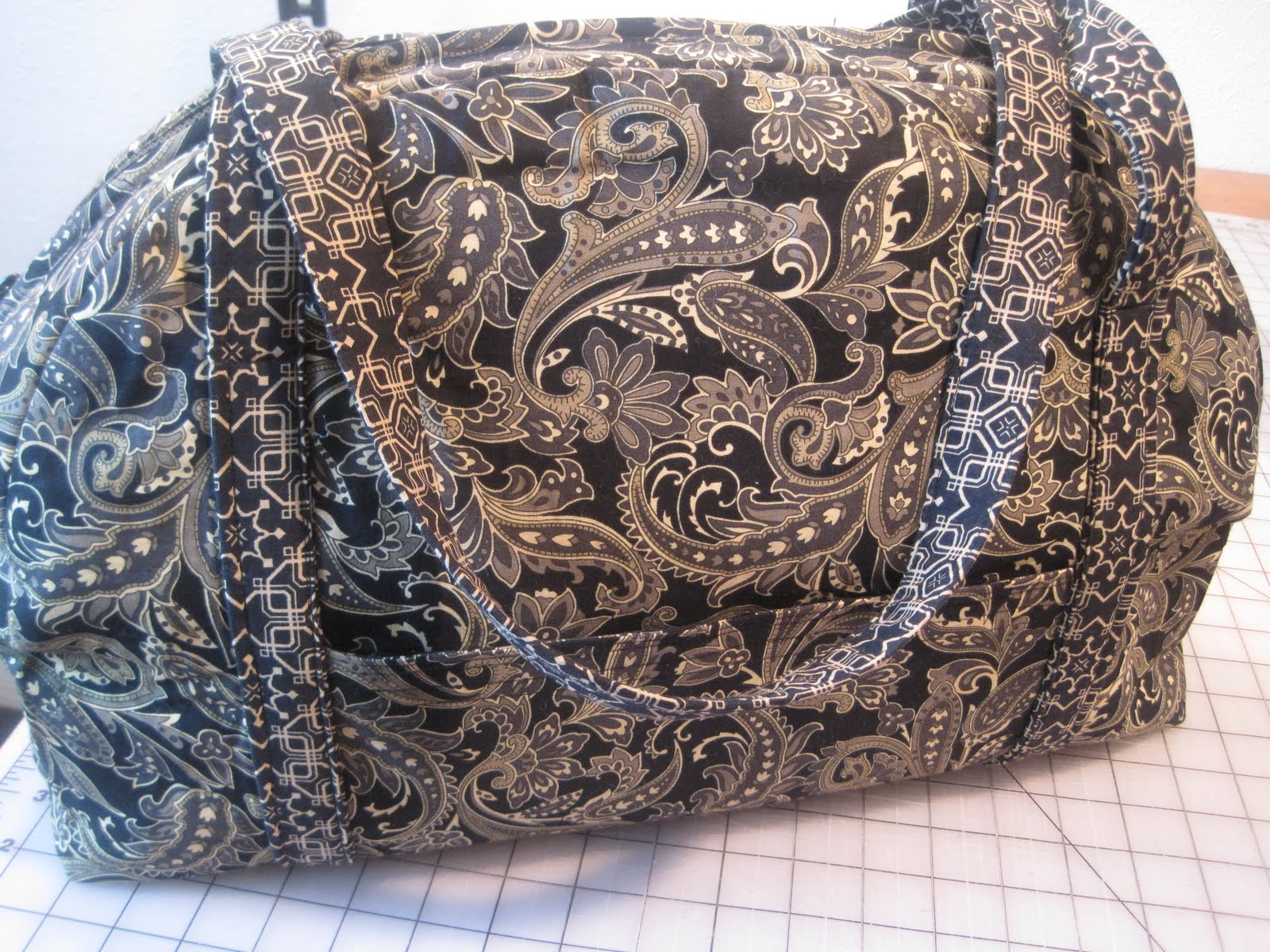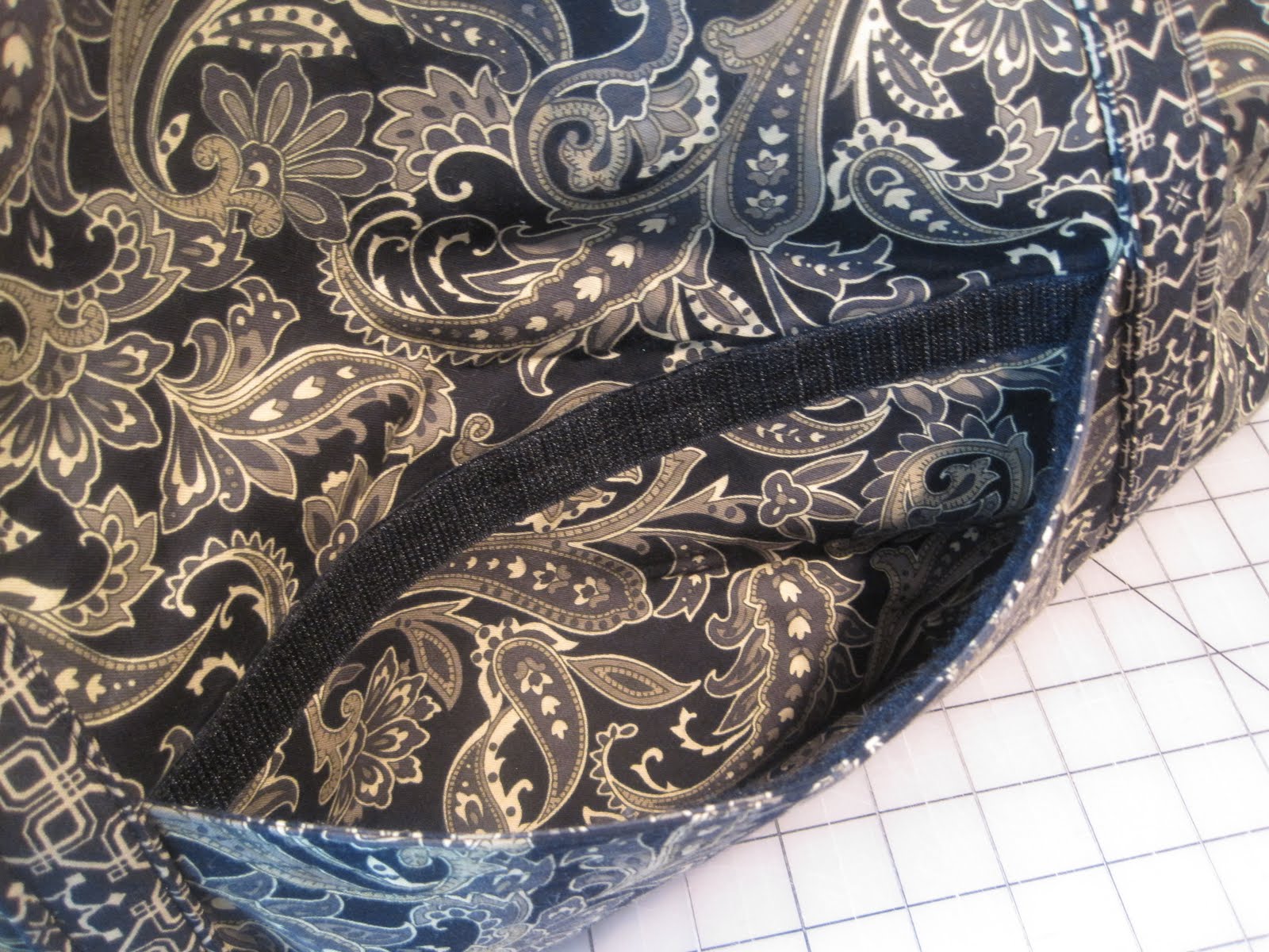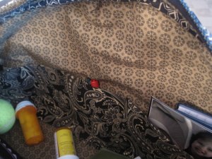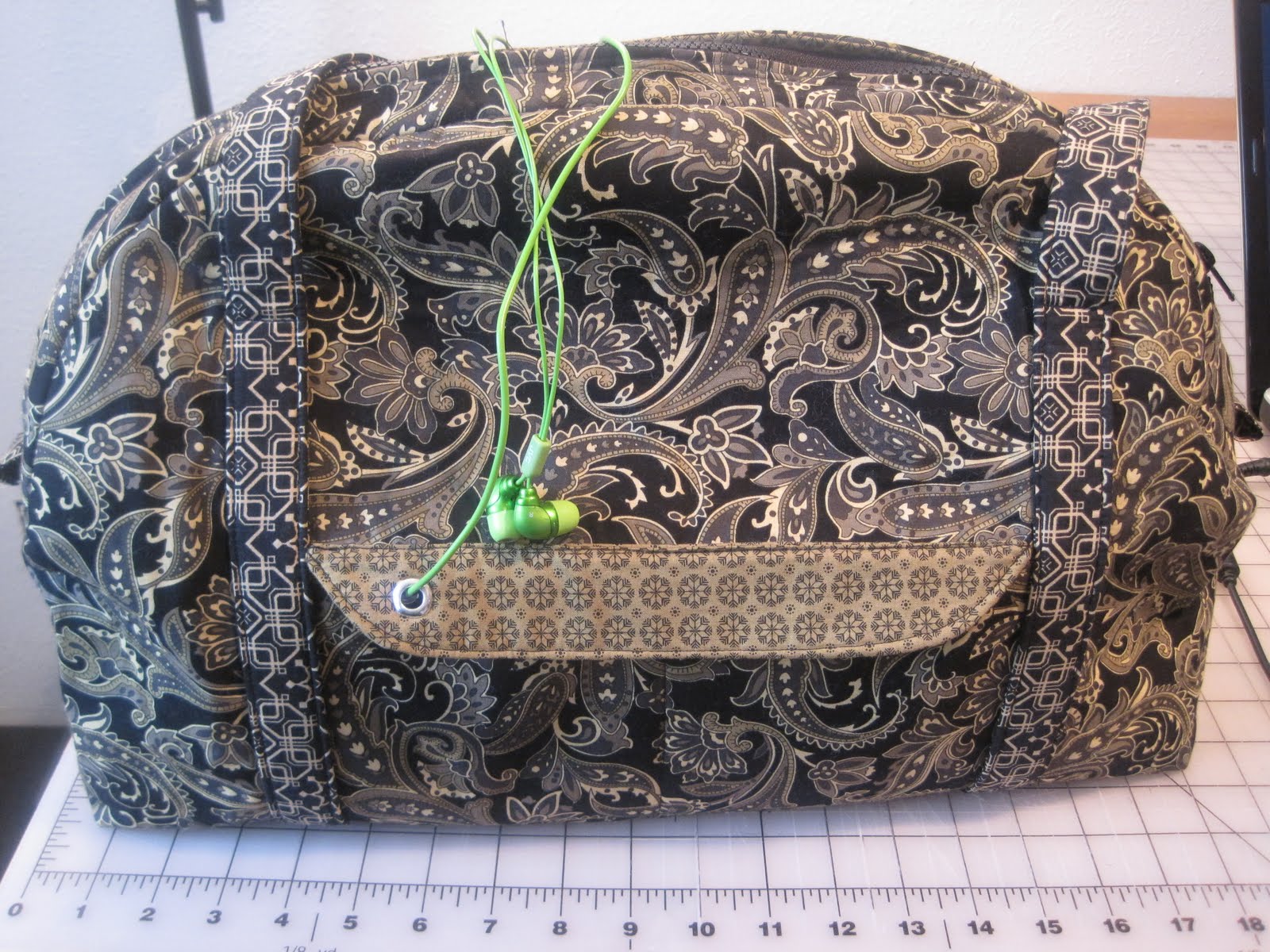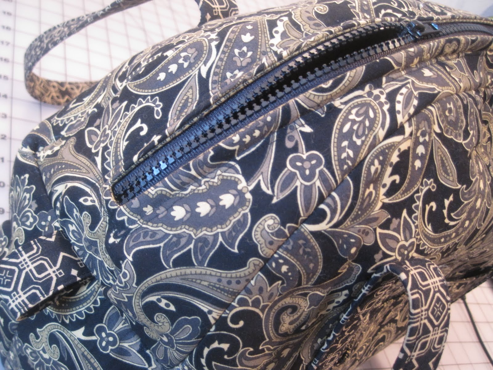 once i had this figured out it was time to study the pattern. i normally read through a bag pattern once or twice before i make it. i have made a lot of bags & a lot of the time the basic construction is similar. not the case with this one. this one had a big zipper, a grommet & didn’t go together the way i normally make bags. the reading continued. i probably read the pattern about 10 times before i cut the fabric as i did not have room for error. the pattern is well written i just didn’t want to screw up the bag.