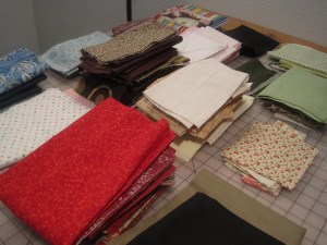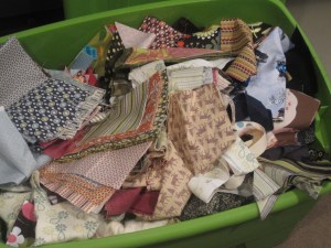 i have began by sorting them into piles of color range. if i come across something that is 5″ or wider & the full WOF then that goes into a separate pile. fat quarters into a separate pile as well.