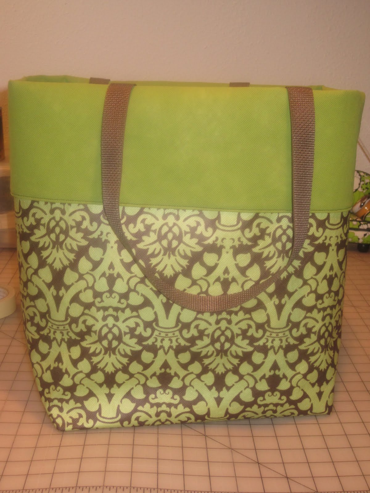 i wanted/needed (what the difference?) an instant gratification project. so i made this nice large tote. its an Atkinson Designs pattern from their Big Bags, Little Bags book. i am not sure how to describe the fabric that i made it out of but i found it at Joann’s & it was only $2.99/yard. it the type of material that the reusable grocery bags are made out of only tougher.