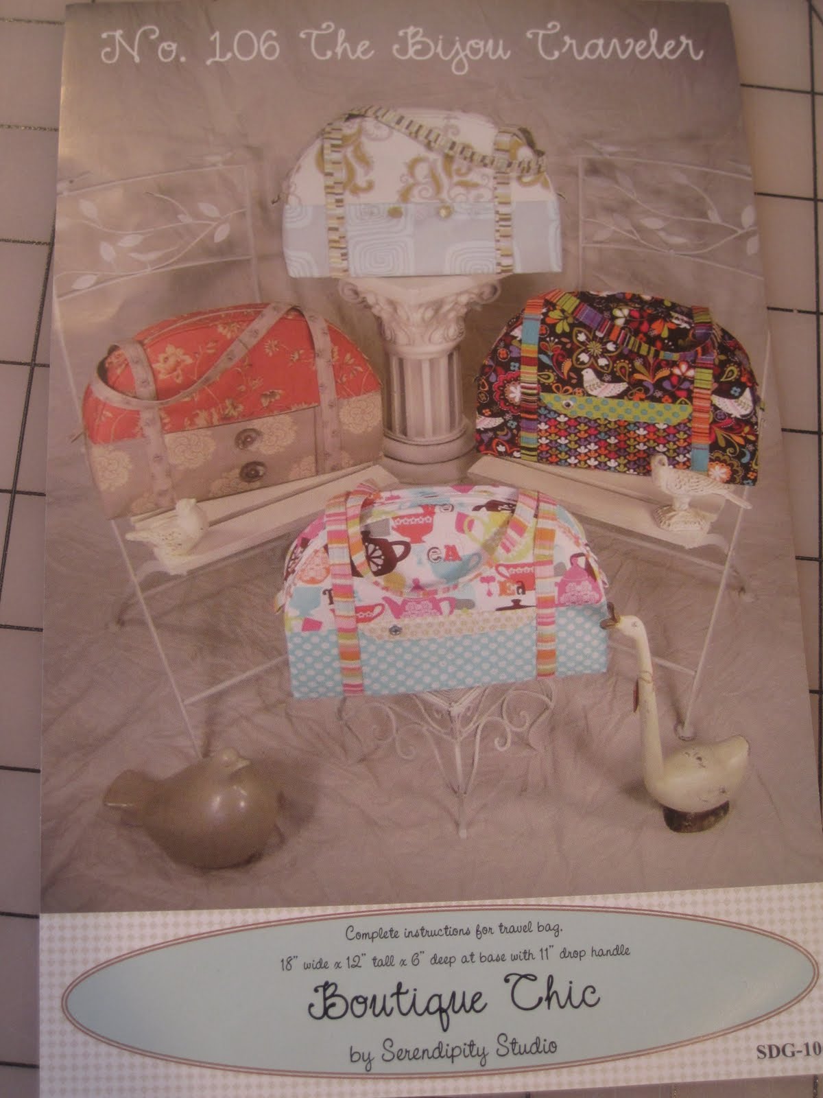 the pattern is No. 106 The Bijou Traveler by Serendipity Studio