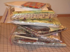 i have began by sorting them into piles of color range. if i come across something that is 5″ or wider & the full WOF then that goes into a separate pile. fat quarters into a separate pile as well.
