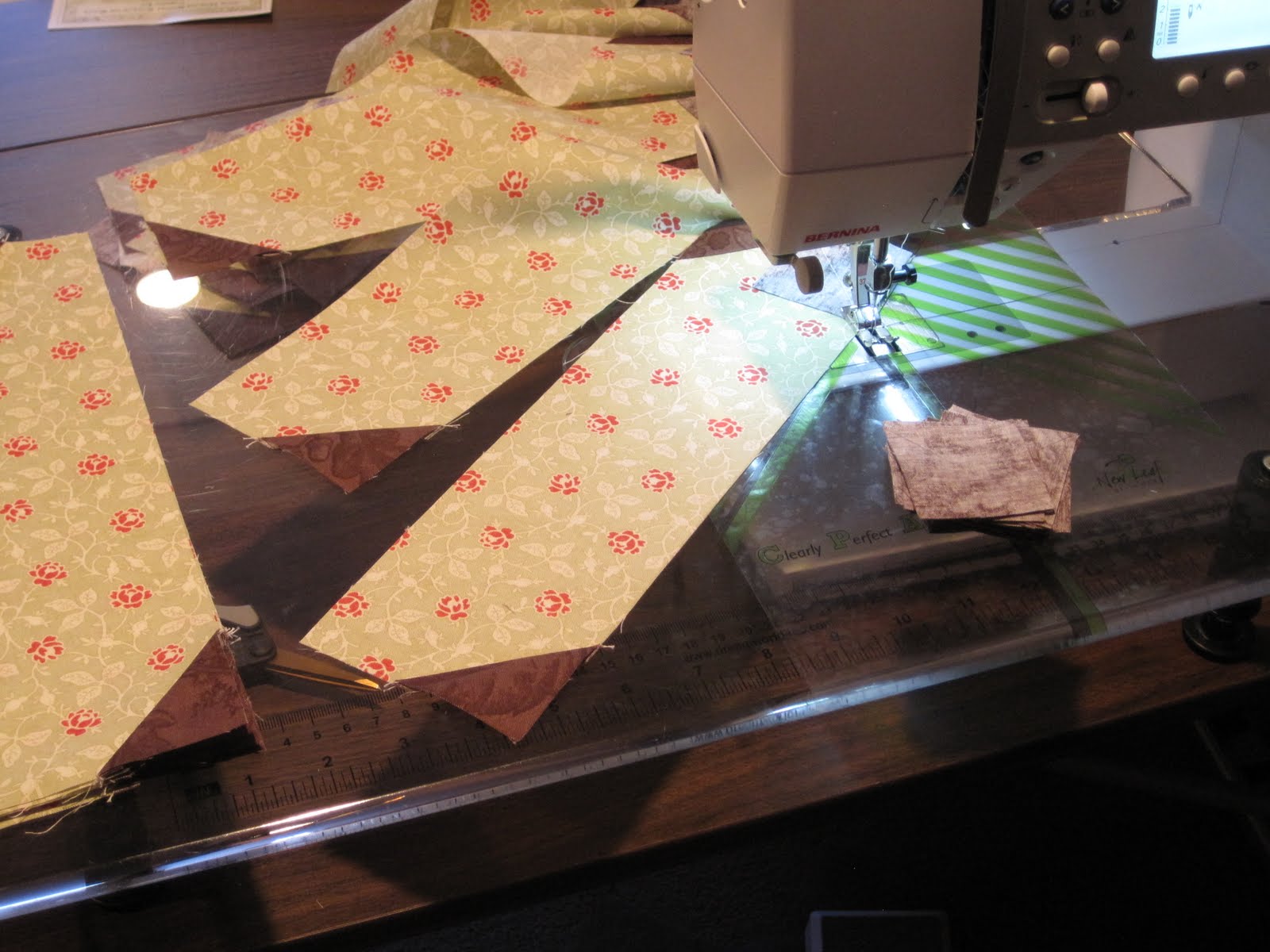 i am back from Houston and back at my machine. with the help of a couple friends it worked out that my machine came back home while i was out of town – which is great considering it was 2 hours away from my home being serviced. i was sewing last night working on last years mystery block quilt from Fat Quarter Shop.